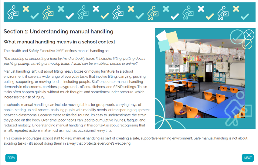 PLEASE NOTE: This course is for information purposes and to train on the safe handling of heavy items, it does not qualify school staff for handling children.